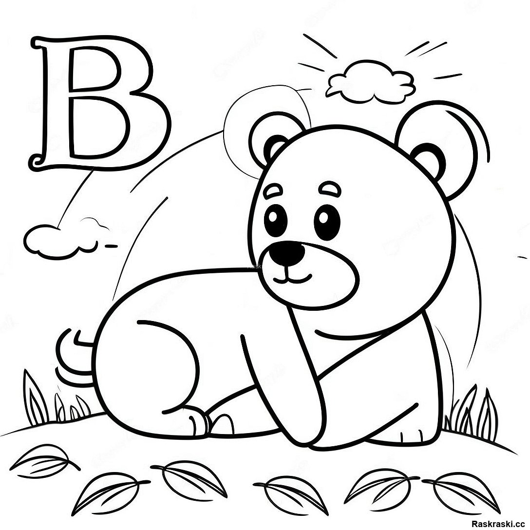 Скачать печатный PDF Б - Это Медведь Раскраска Алфавита