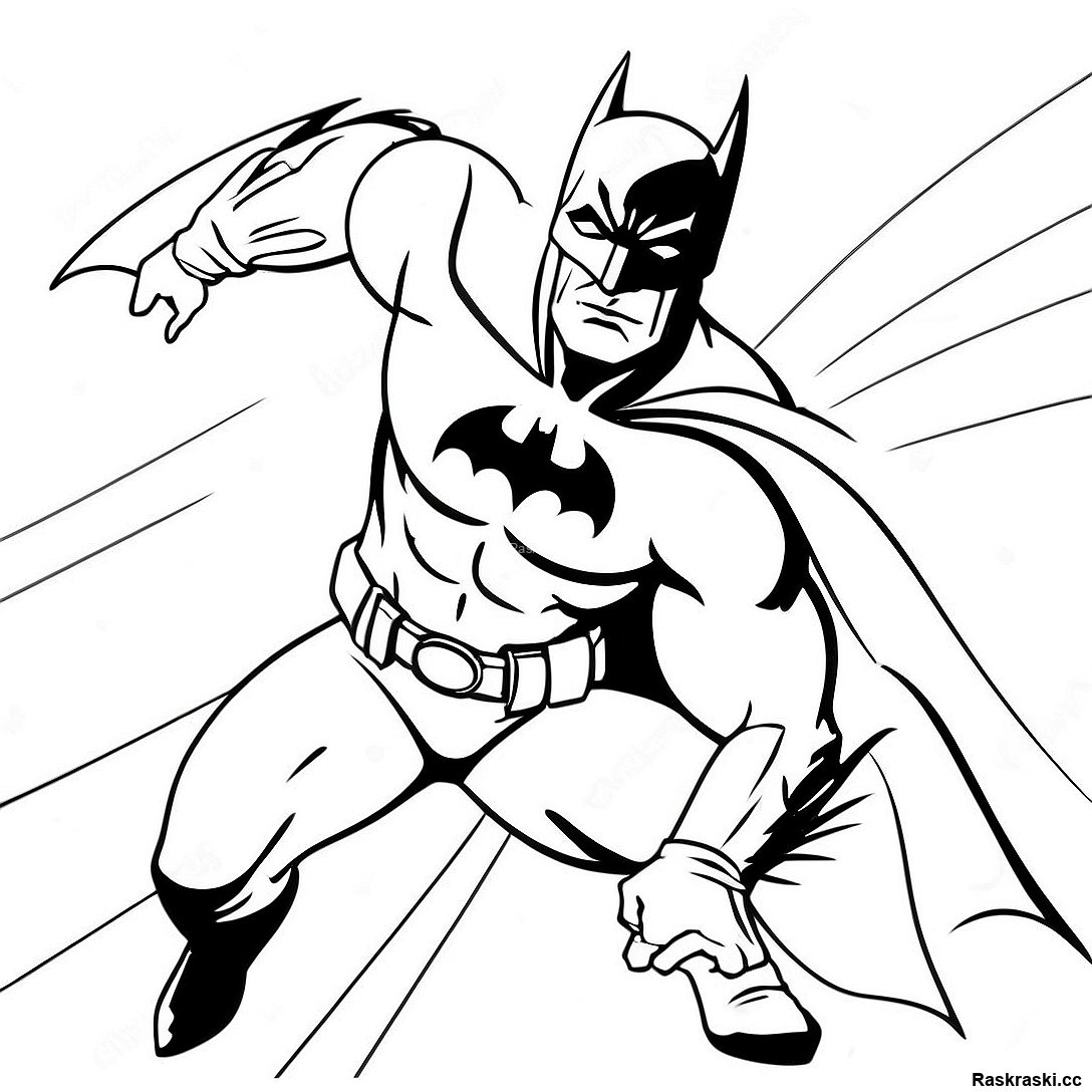 Скачать печатный PDF Бэтмен В Динамичной Позе Раскраска