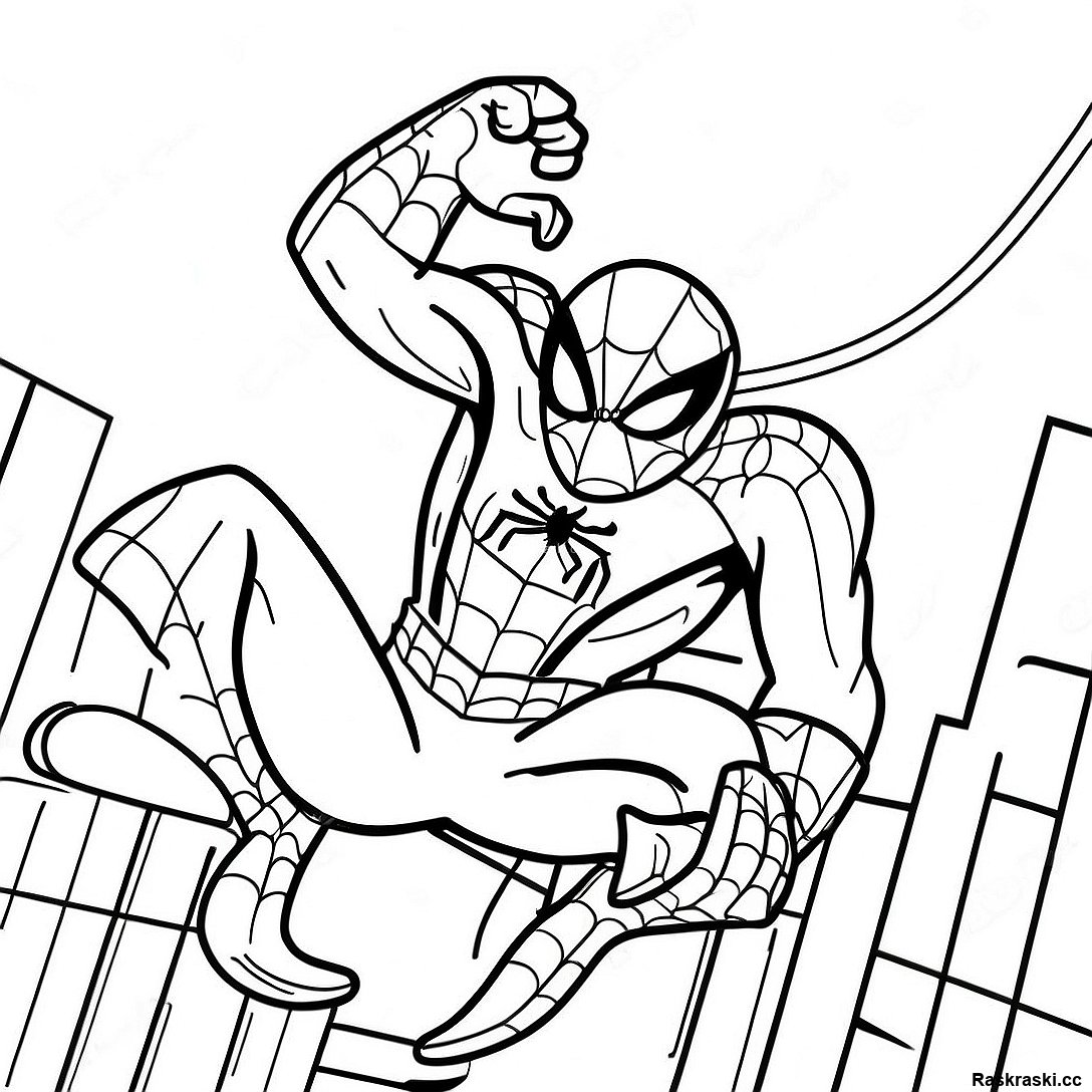 Человек-паук, качающийся по городу - раскраска