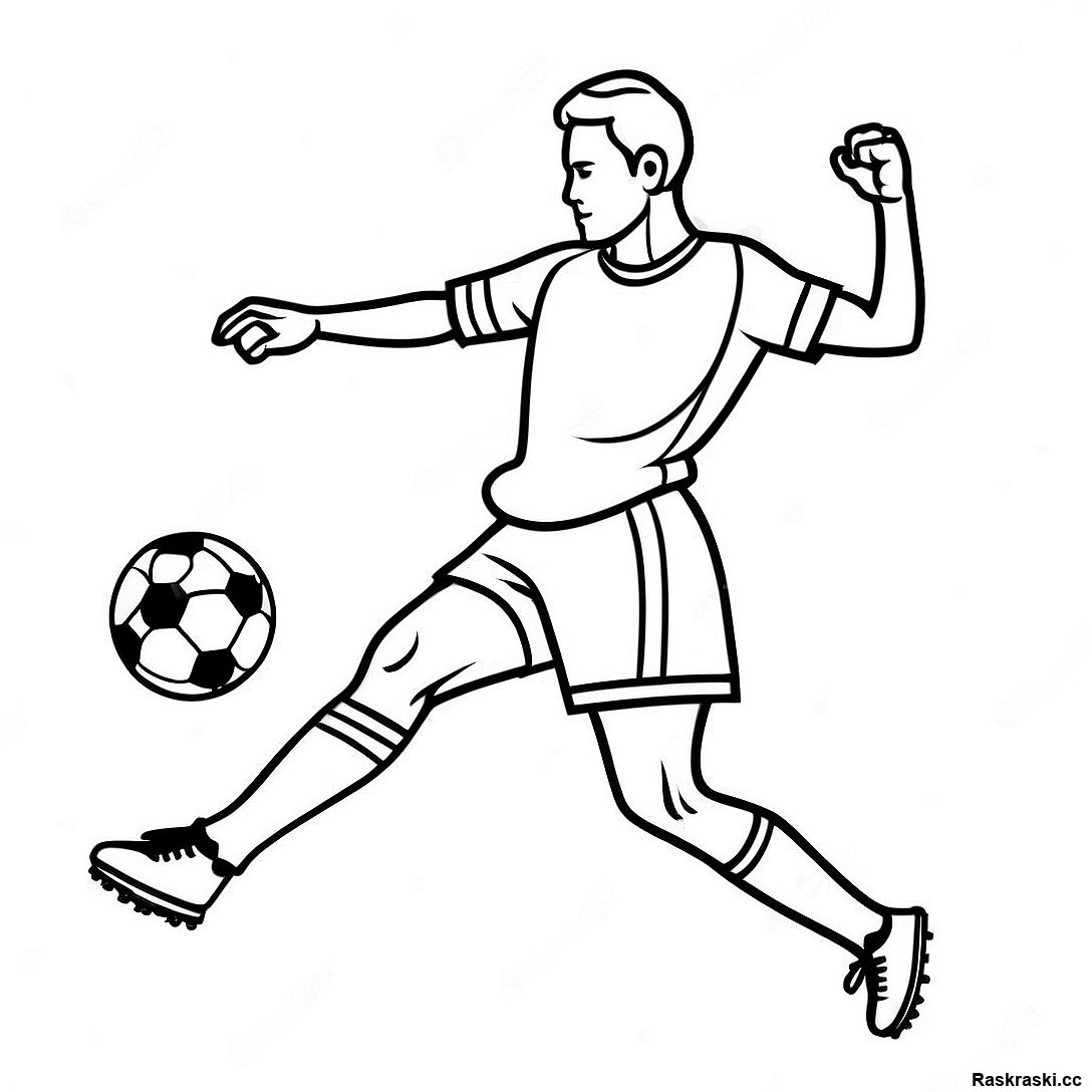 Футболист, Бьющий По Мячу - Раскраска