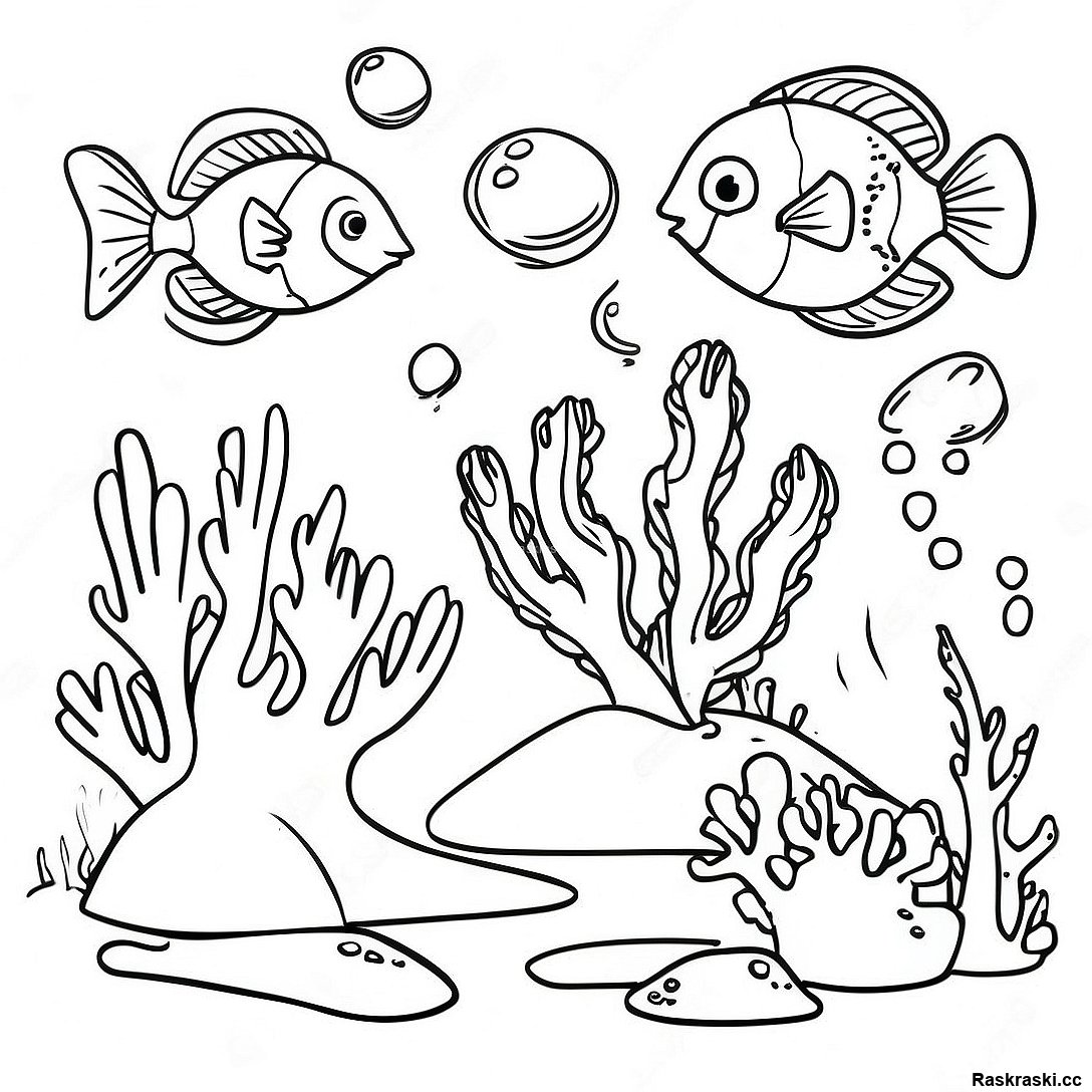 Скачать печатный PDF Яркая Раскраска Сцены Кораллового Рифа
