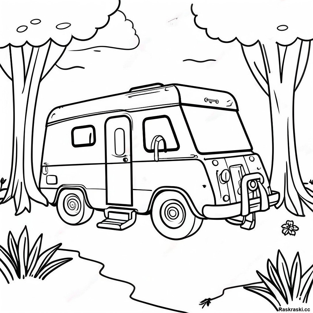 Скачать печатный PDF Яркий Кемпер На Природе - Раскраска