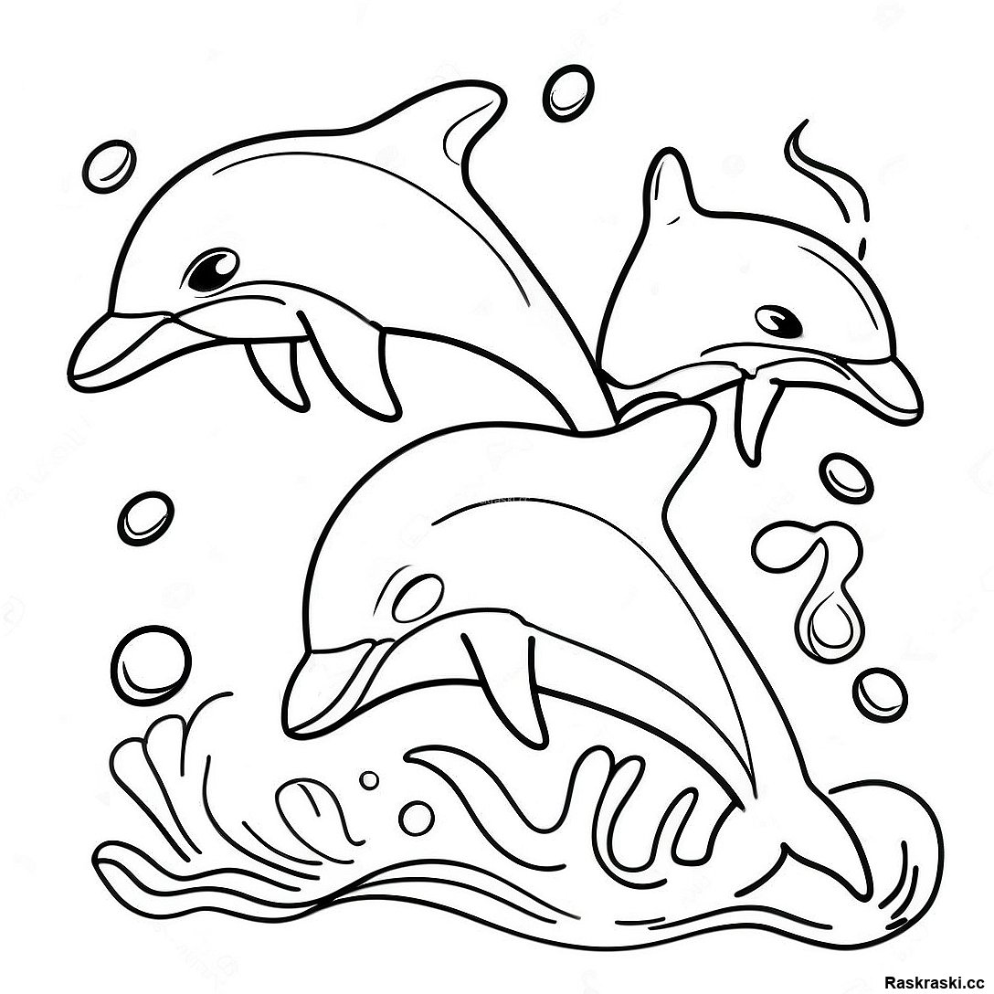 Скачать печатный PDF Игривые Дельфины В Плавании Раскраска