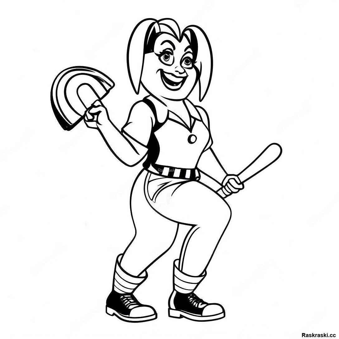 Скачать печатный PDF Харли Квинн С Молотом Раскраска