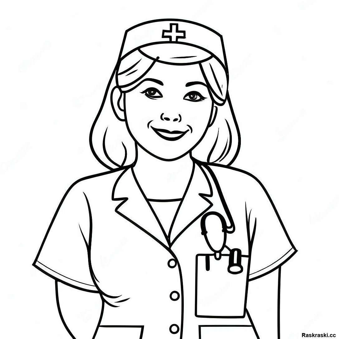 Скачать печатный PDF Медсестра В Медицинской Форме С Оборудованием Раскраска