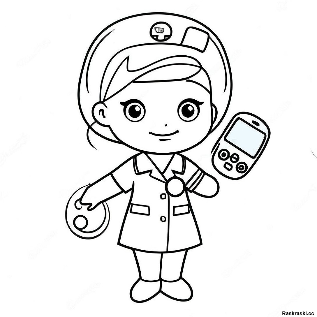 Скачать печатный PDF Милая Медсестра Со Стетоскопом Раскраска