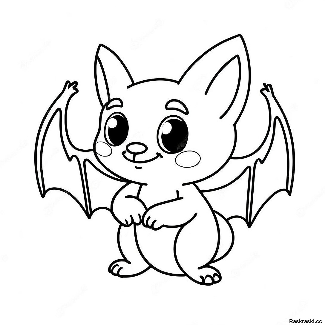 Скачать печатный PDF Милая Раскраска Мультяшной Летучей Мыши