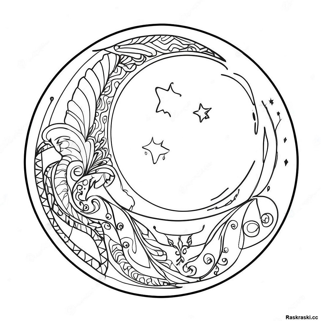 Скачать печатный PDF Мистическая Полная Луна На Раскраске