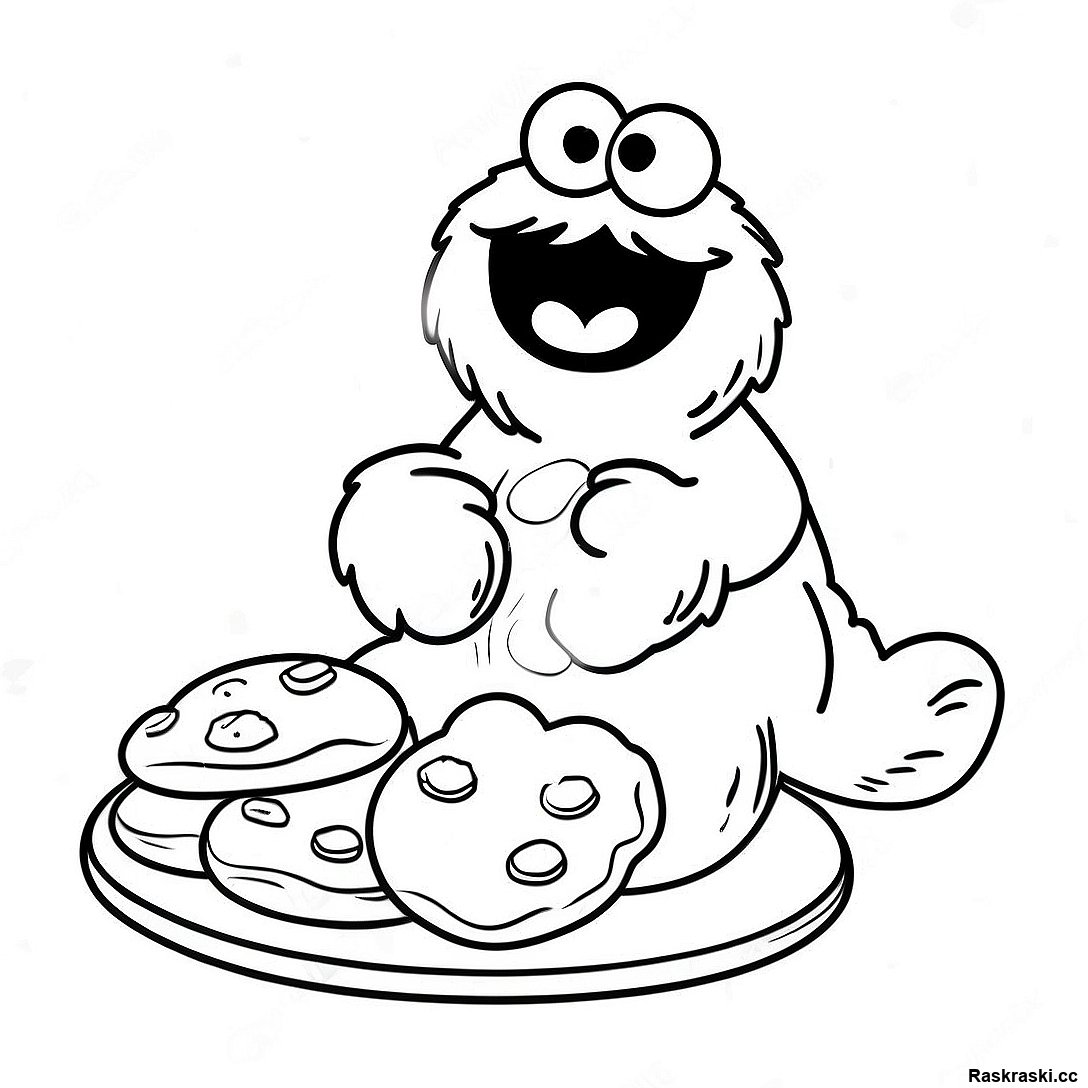 Скачать печатный PDF Монстр Печенья Ест Печенье - Раскраска