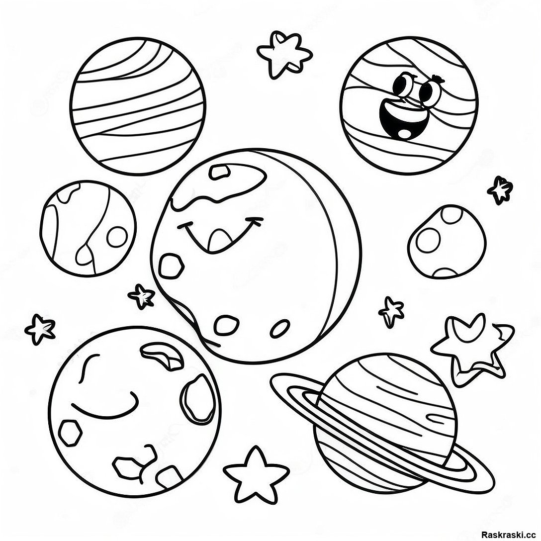 Скачать печатный PDF Мультяшные Карликовые Планеты Для Раскраски