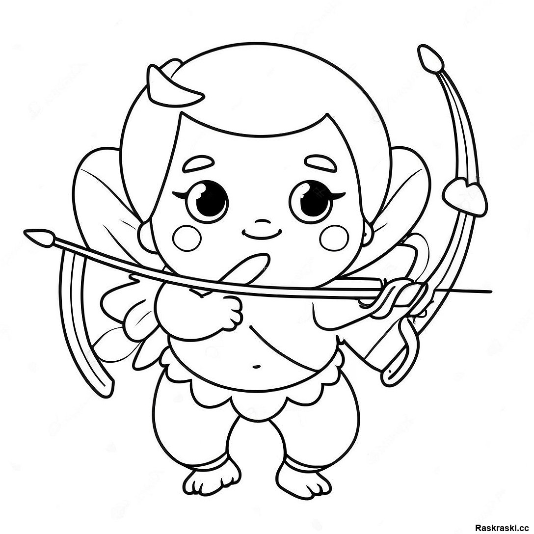 Скачать печатный PDF Пухлый Купидон С Луком И Стрелой - Раскраска