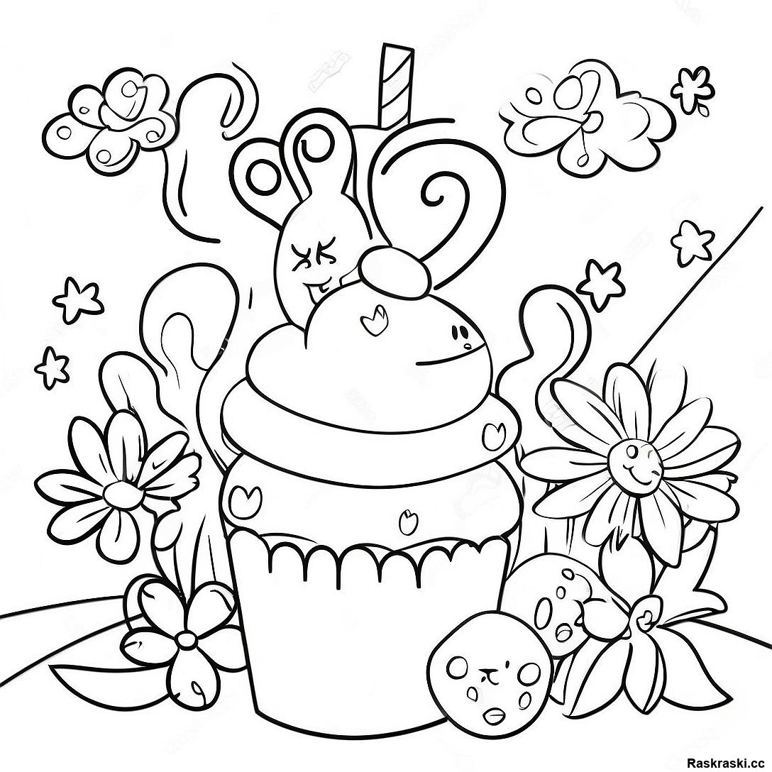 Веселый кролик с яйцами - раскраска