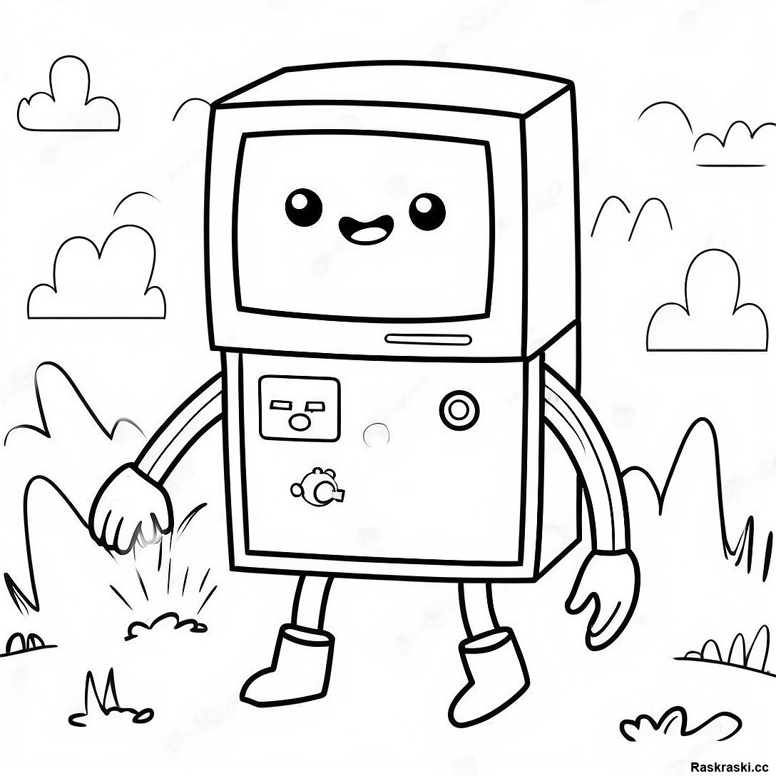 Скачать печатный PDF Раскраска Бмо, Играющего В Время Приключений