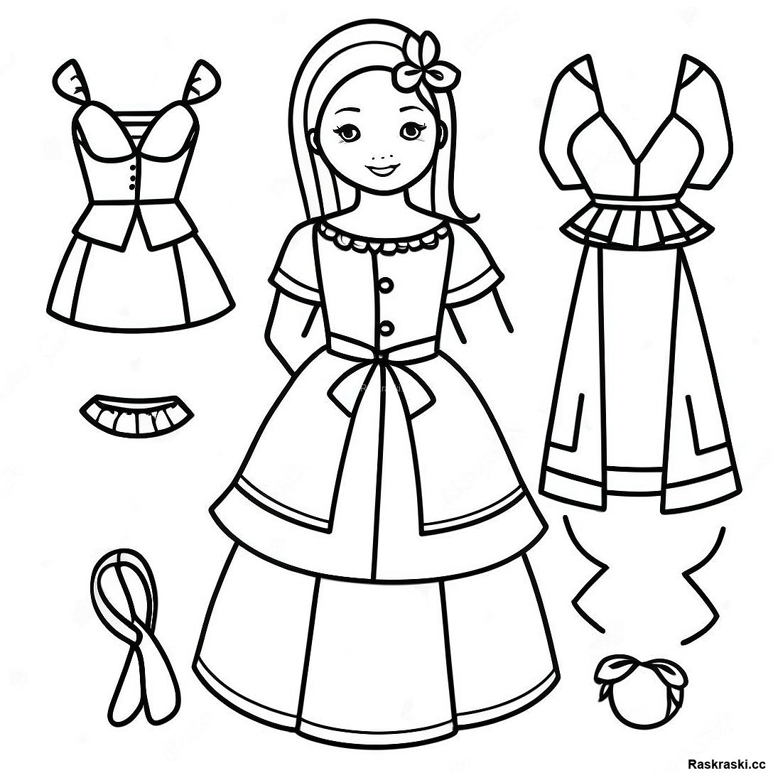Скачать печатный PDF Раскраска Бумажной Куклы