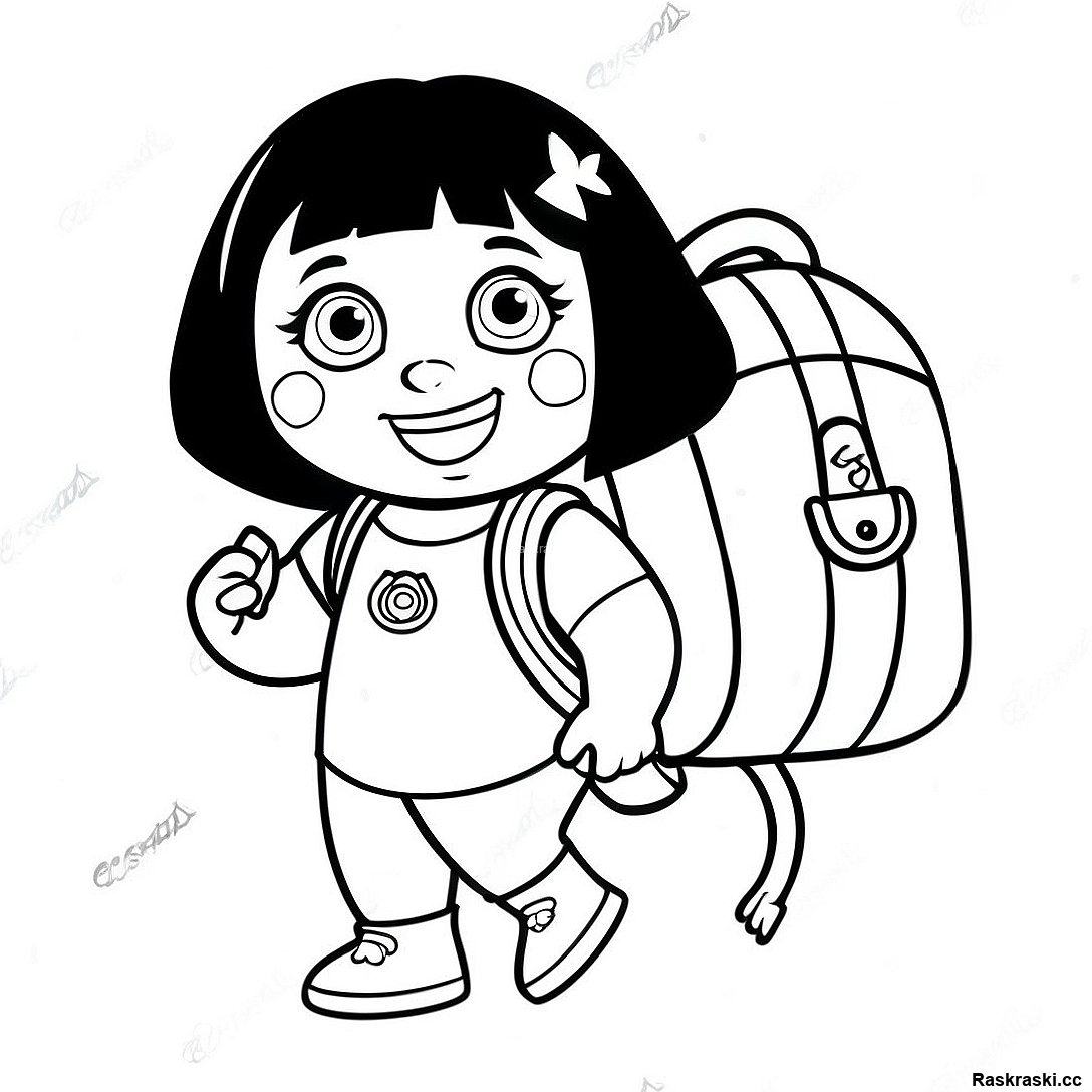 Скачать печатный PDF Раскраска Доры-Исследовательницы С Рюкзаком