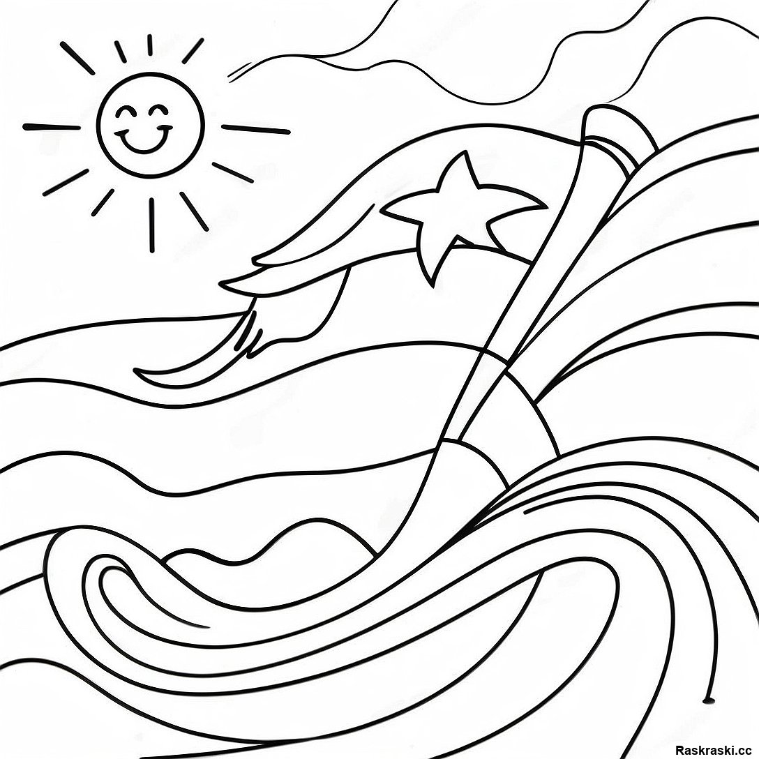 Скачать печатный PDF Раскраска Флага Кубы С Солнцем И Волнами