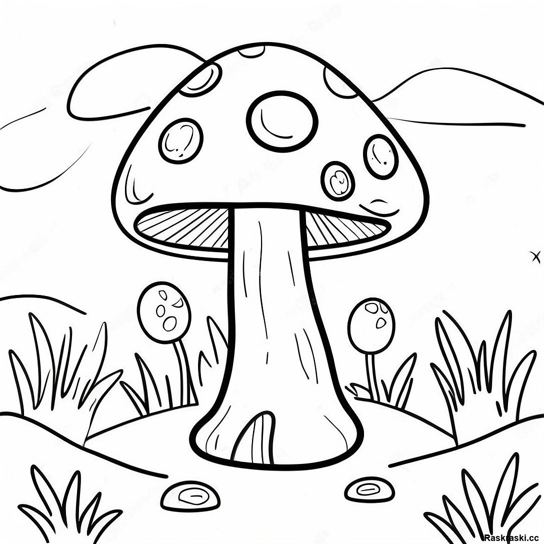 Раскраска Грибного Пейзажа