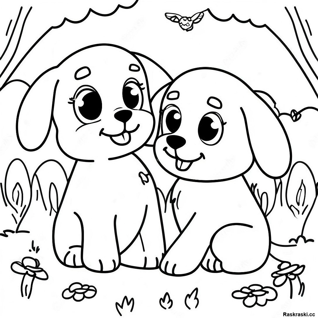 Скачать печатный PDF Раскраска Игривых Щенков В Парке