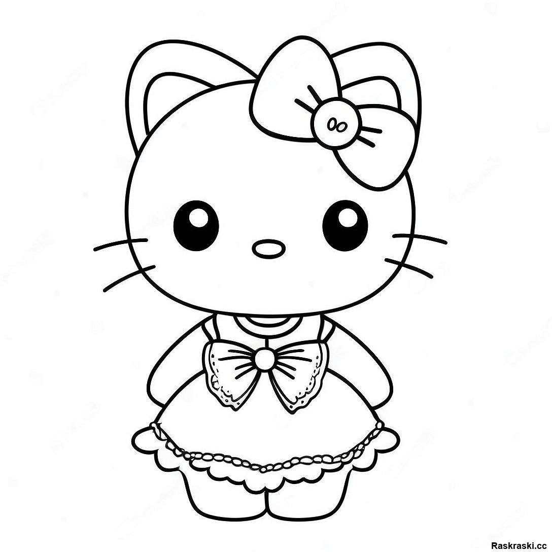 Скачать печатный PDF Раскраска Хелло Китти В Милом Платье