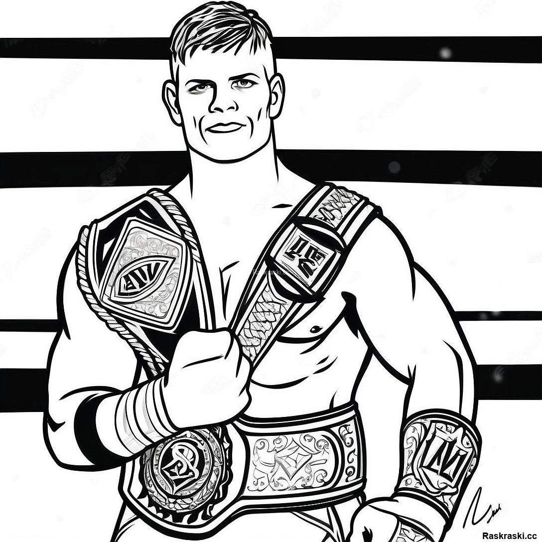 Скачать печатный PDF Раскраска Коди Роудса С Чемпионским Поясом
