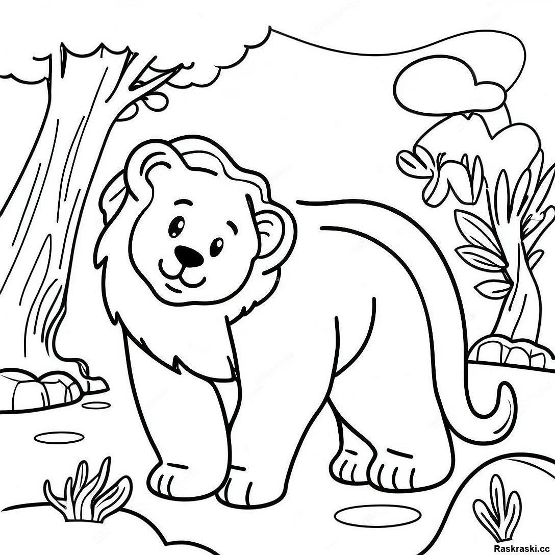 Раскраска с величественным львом