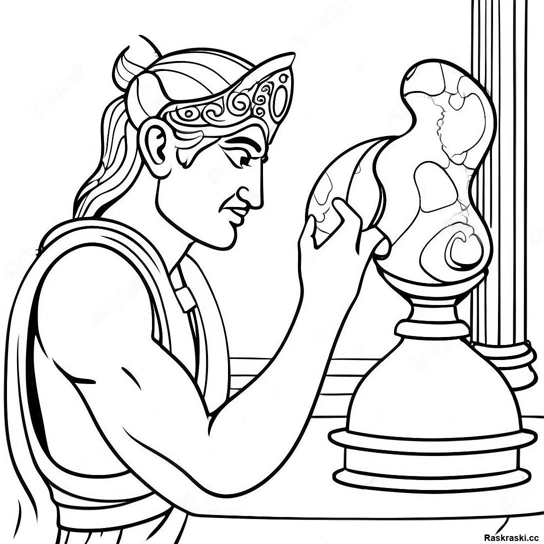 Скачать печатный PDF Раскраска Мидаса, Превращающего Предметы В Золото
