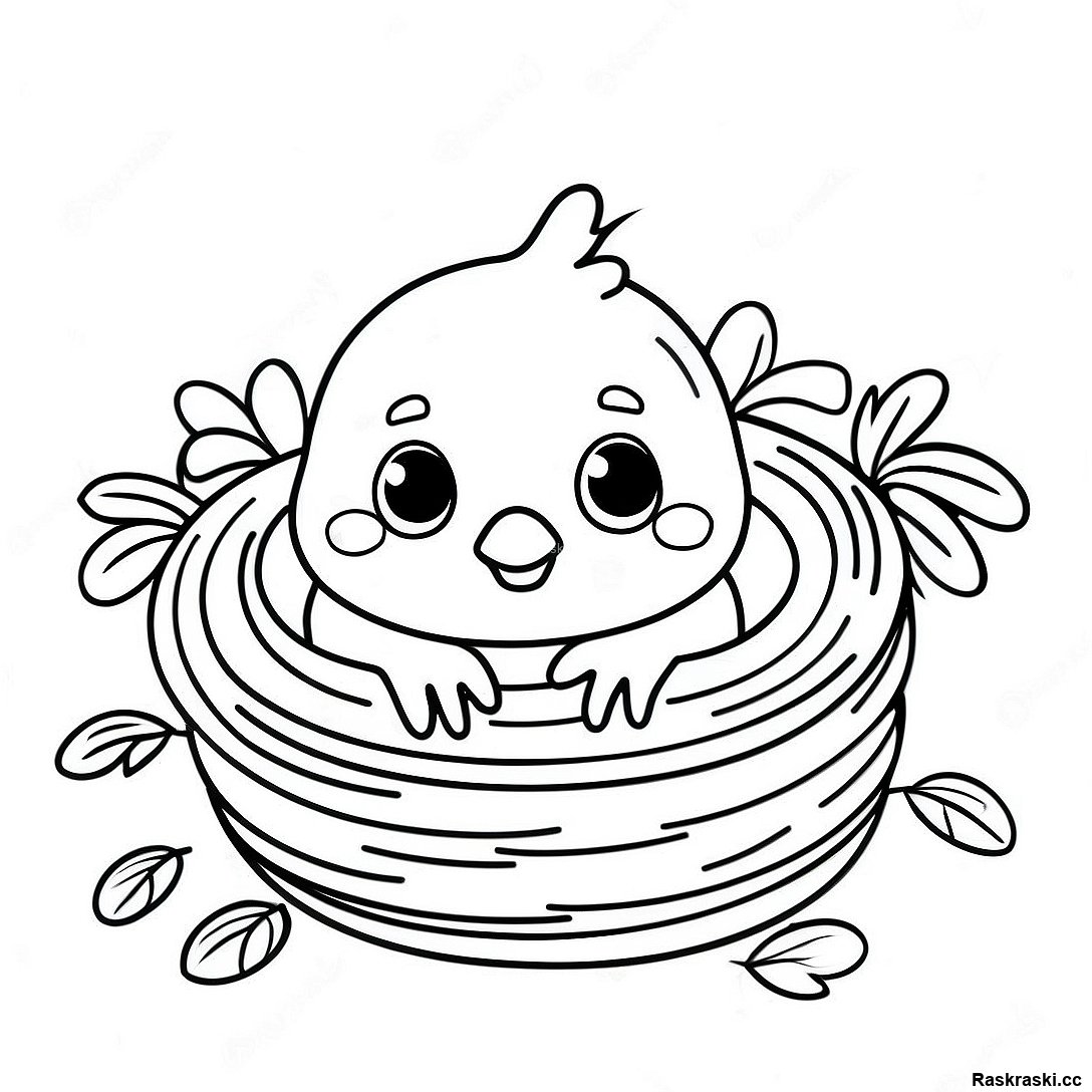 Скачать печатный PDF Раскраска Милого Цыпленка В Гнезде