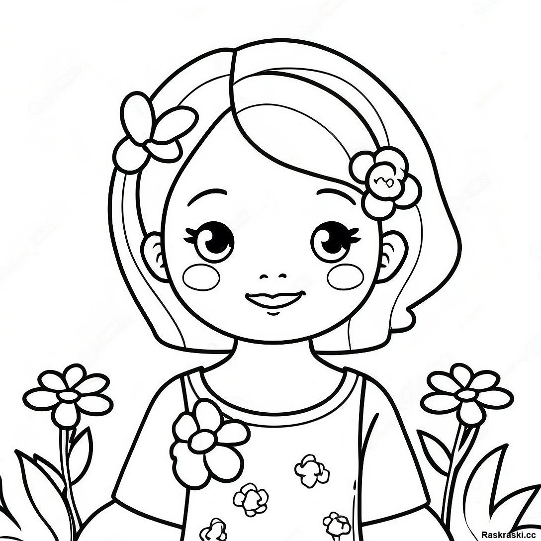 Скачать печатный PDF Раскраска Милой Реалистичной Девушки С Цветами