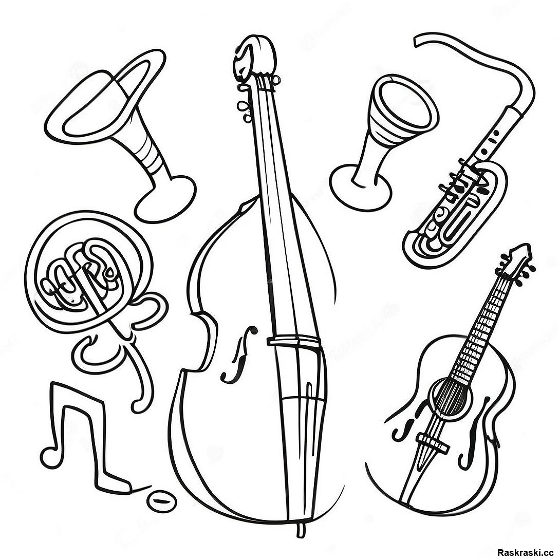 Скачать печатный PDF Раскраска Музыкальных Инструментов