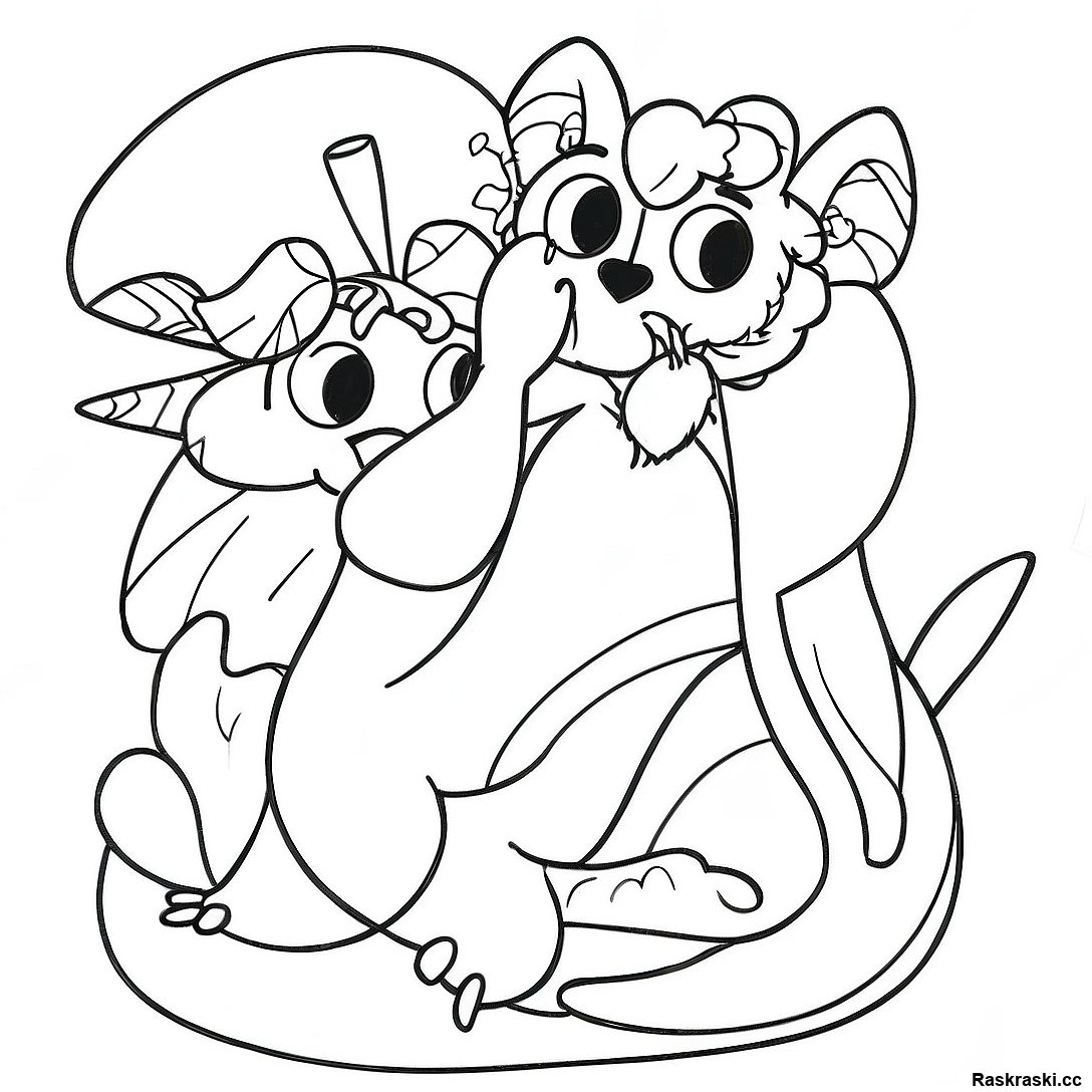 Игривые котята весной - раскраска