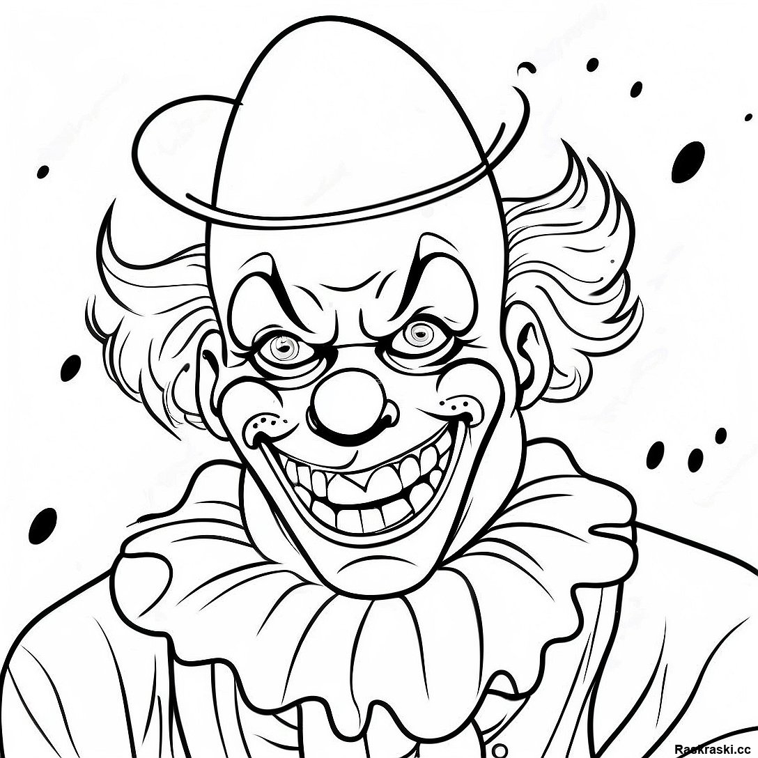 Скачать печатный PDF Раскраска О Страшном Клоуне С Брызгами Крови