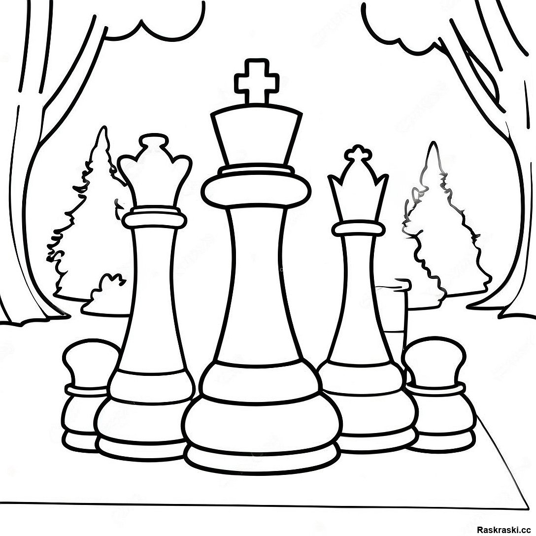Раскраска Огромные Шахматные Фигуры В Парке