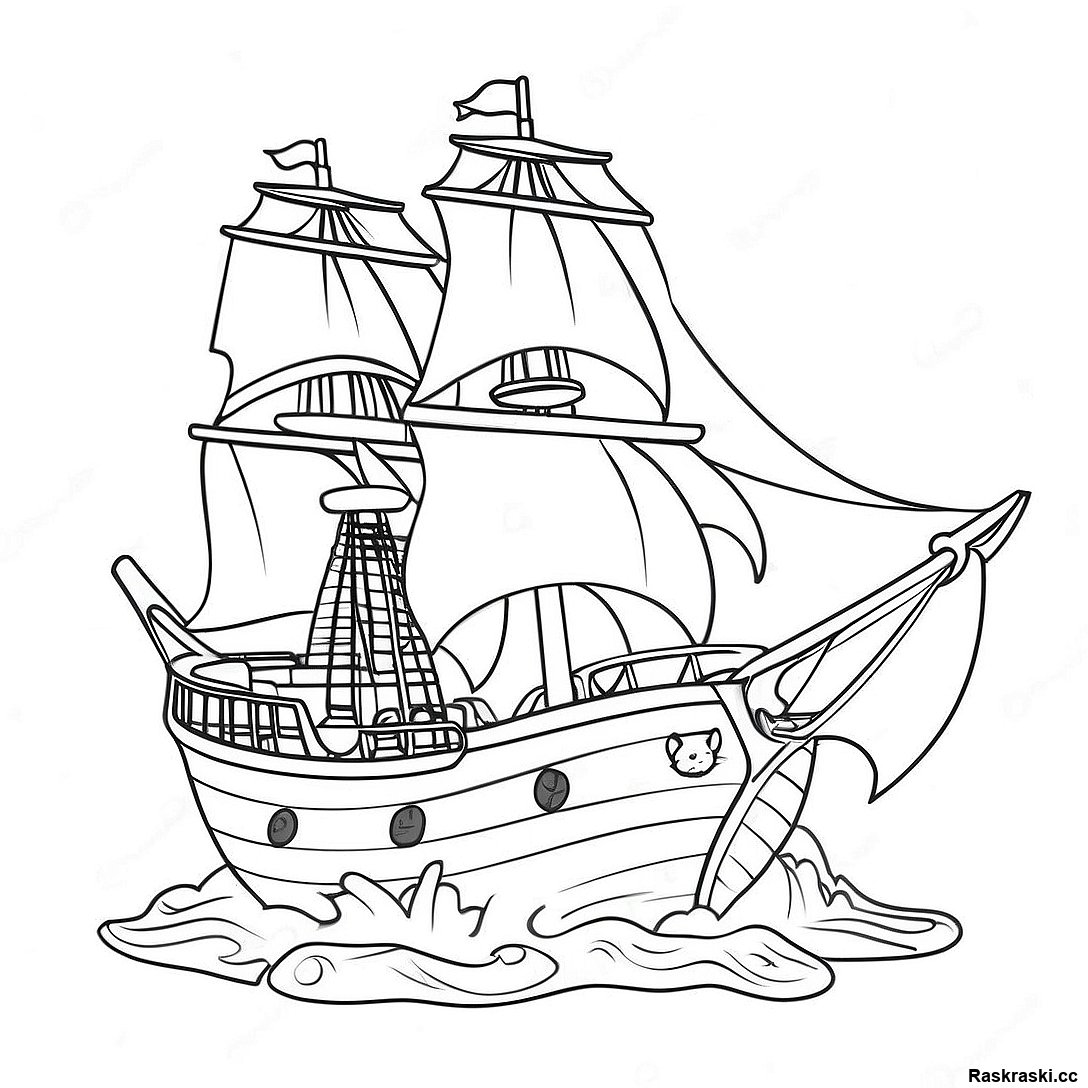 Раскраска Пиратского Корабля С Флагом Веселого Роджера