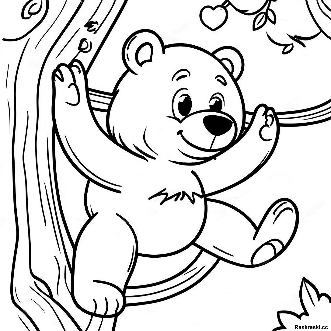 Раскраска Приключенческого Коричневого Медведя, Взбирающегося На Дерево