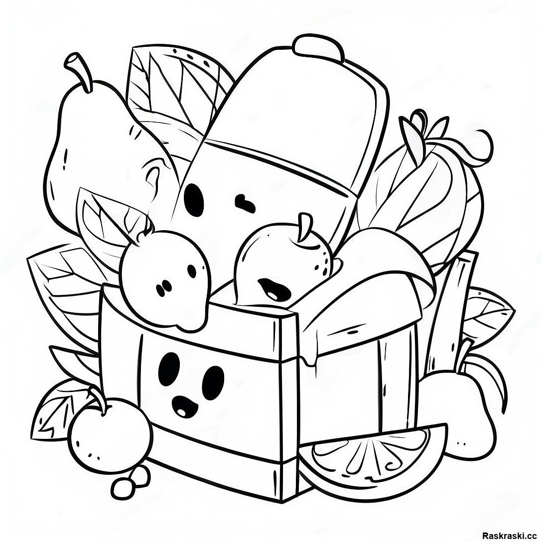 Пасхальная корзина, полная яиц на раскраске