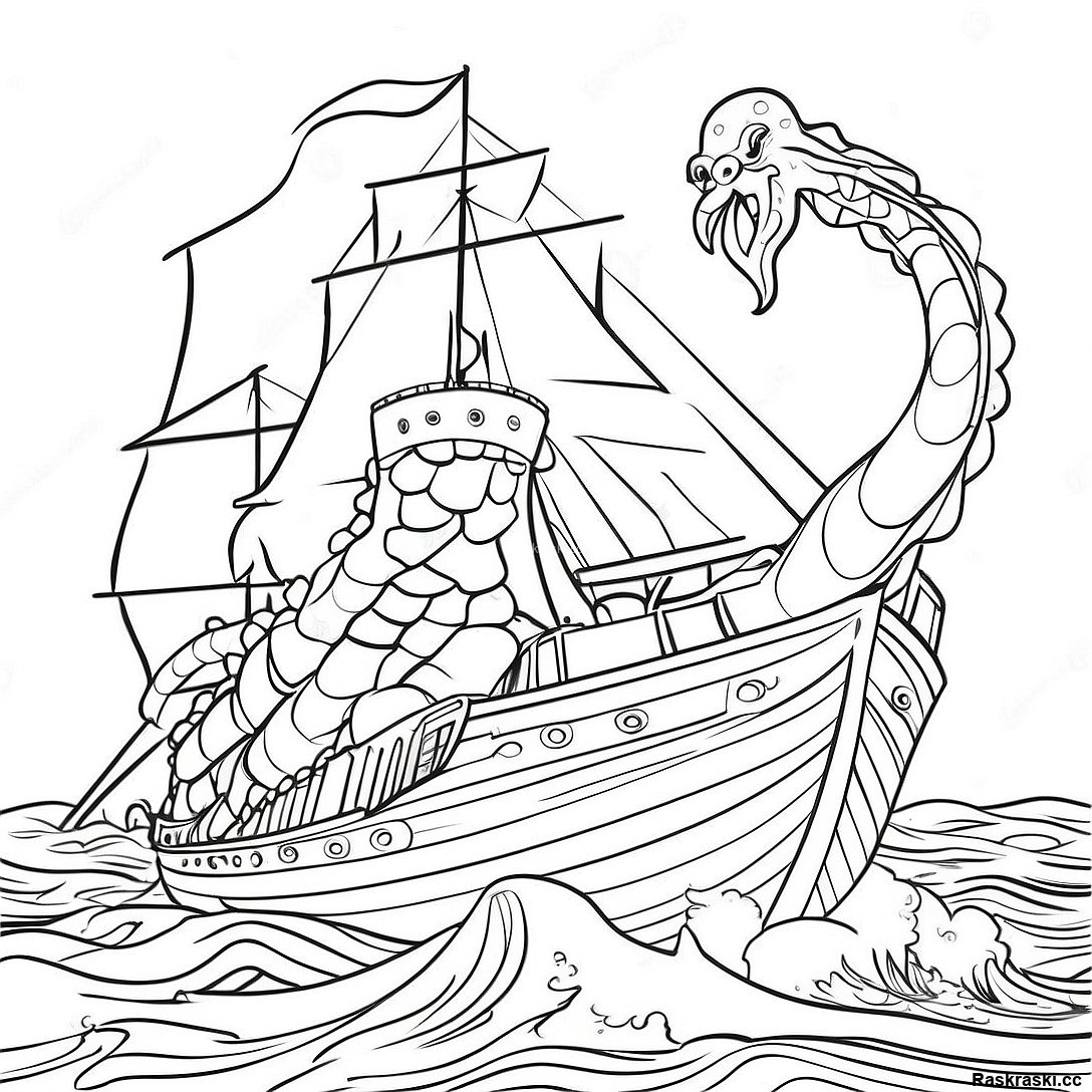 Raskraska Raziarennyi Kraken Obvivaiushchii Korabl