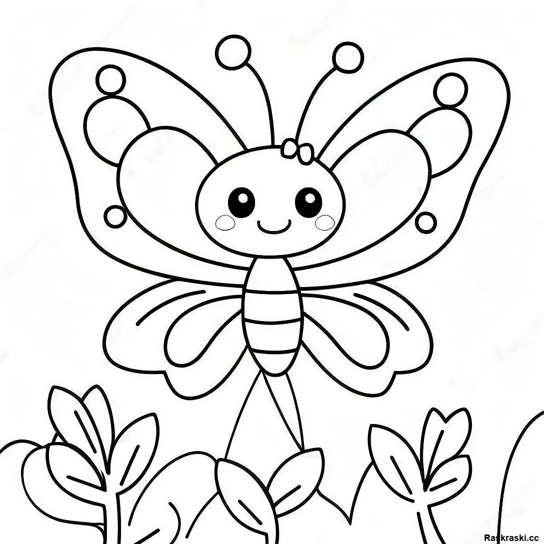Raskraska S Miloi Babochkoi I Tsvetkom S Ulybaiushchimsia Litsom