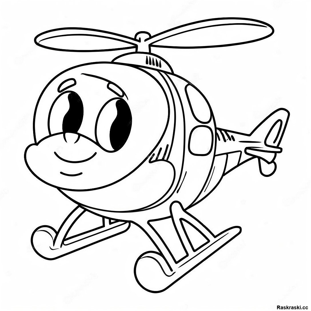 Раскраска С Милым Вертолетом И Улыбающимся Пилотом