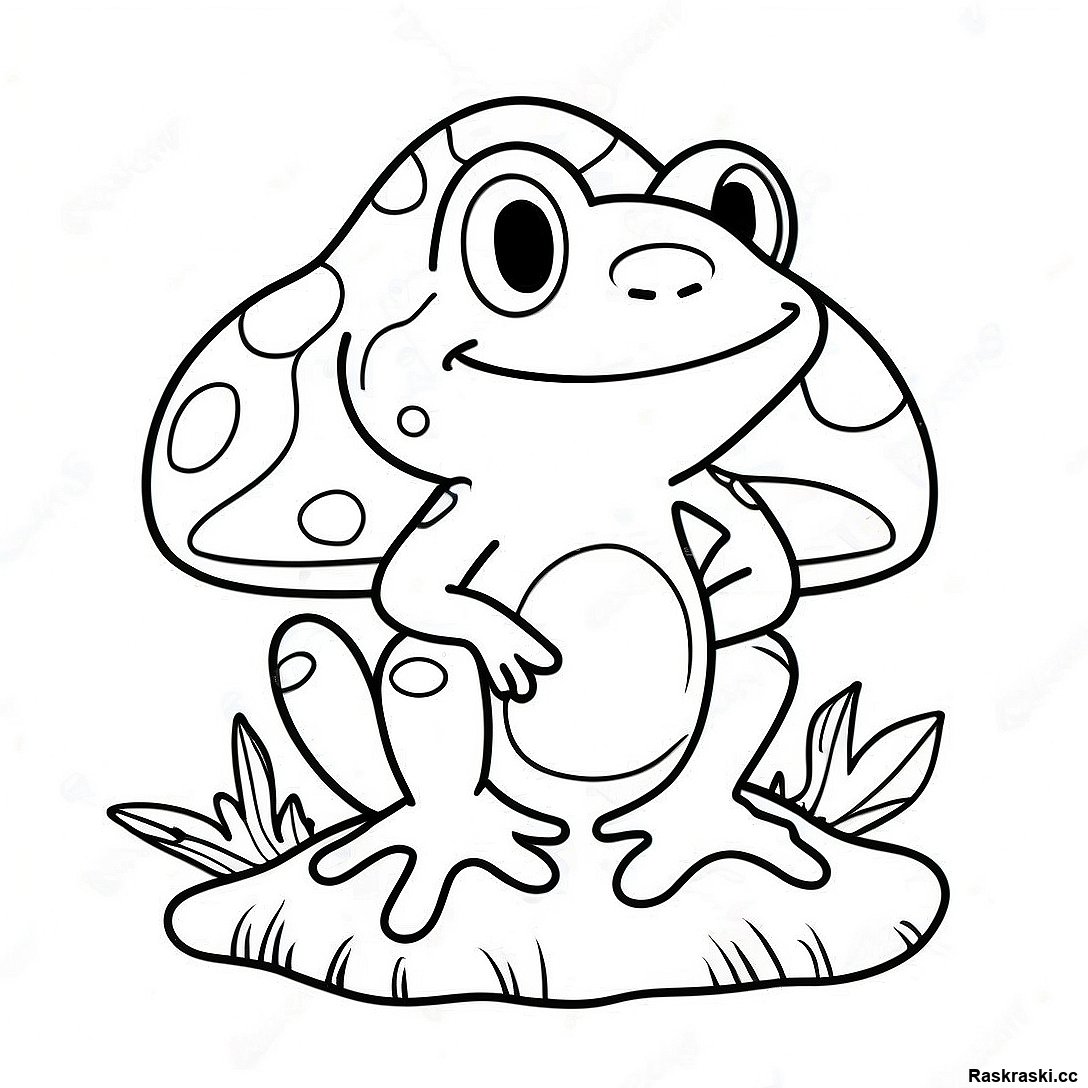 Раскраска «счастливая Лягушка, Сидящая На Грибе»