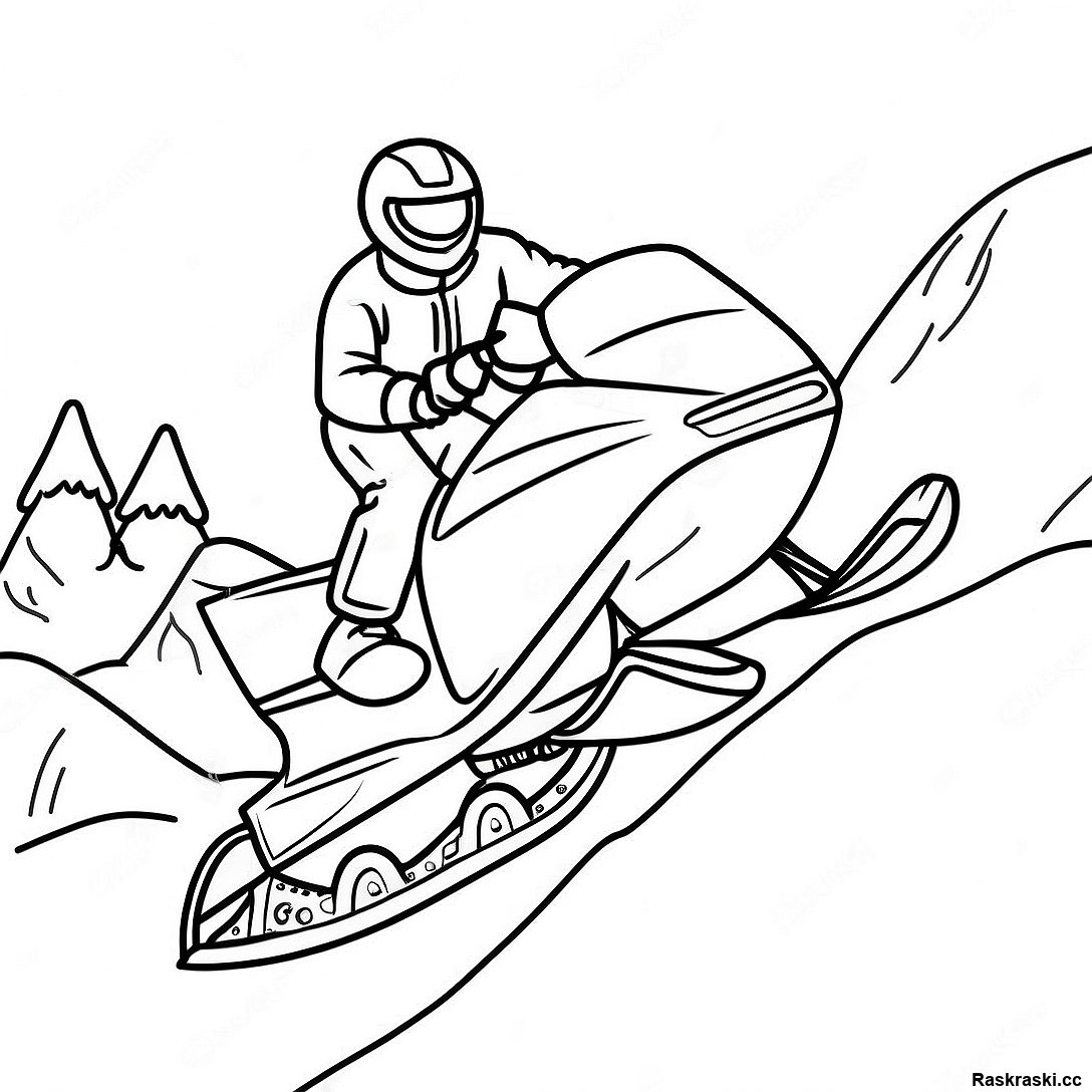 Скачать печатный PDF Раскраска Снегоход, Прыгающий Через Холм