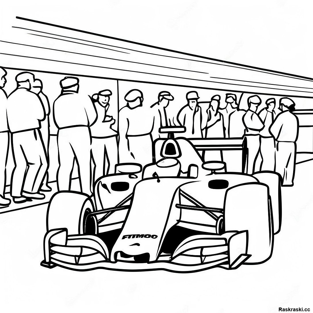 Скачать печатный PDF Раскраска Сцены Пит-Стопа Формулы 1