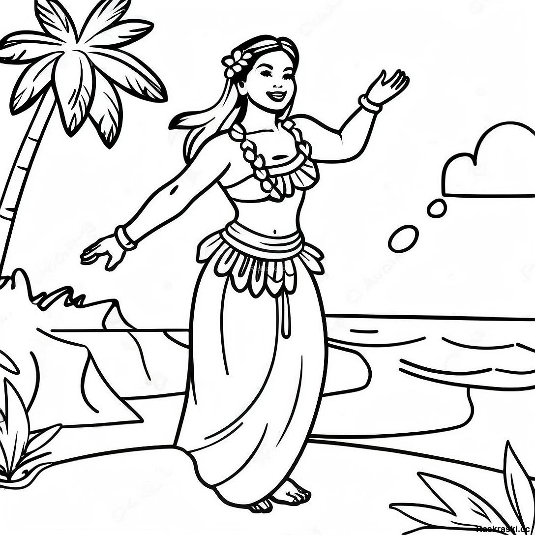 Скачать печатный PDF Раскраска Танцора Хула Aloha