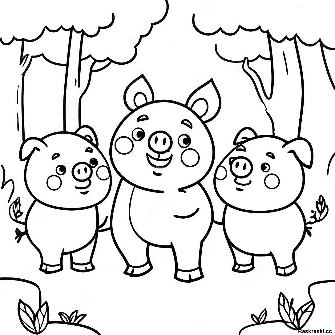 Скачать печатный PDF Раскраска Три Поросенка В Лесу
