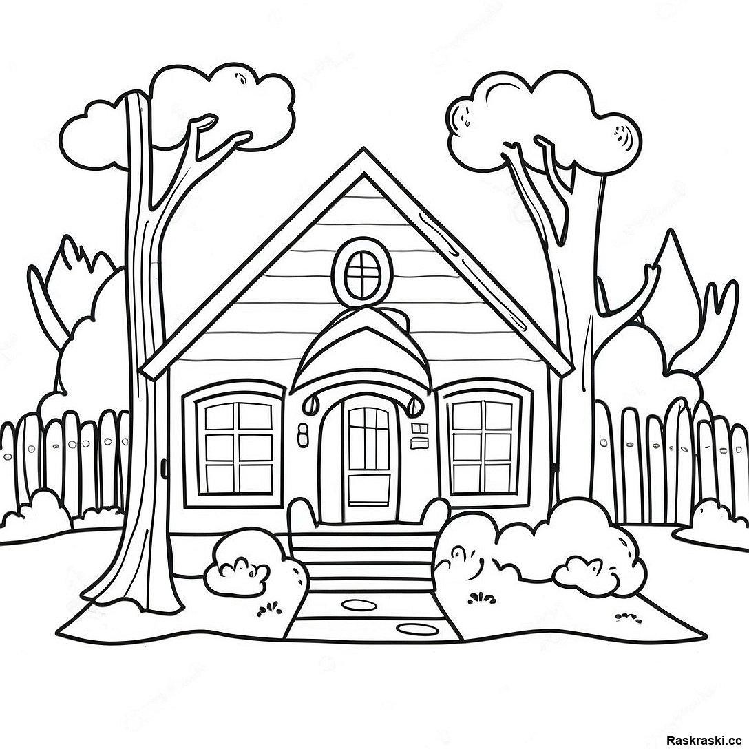 Скачать печатный PDF Раскраска Уютного Дома В Районе