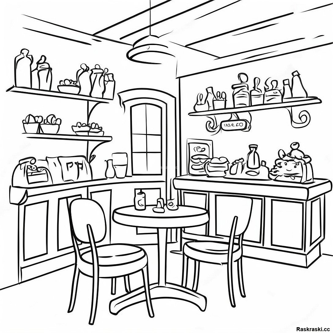 Скачать печатный PDF Раскраска Уютного Интерьера Кафе