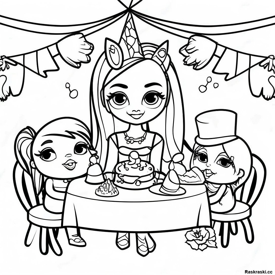 Скачать печатный PDF Раскраска Вечеринки Bratz