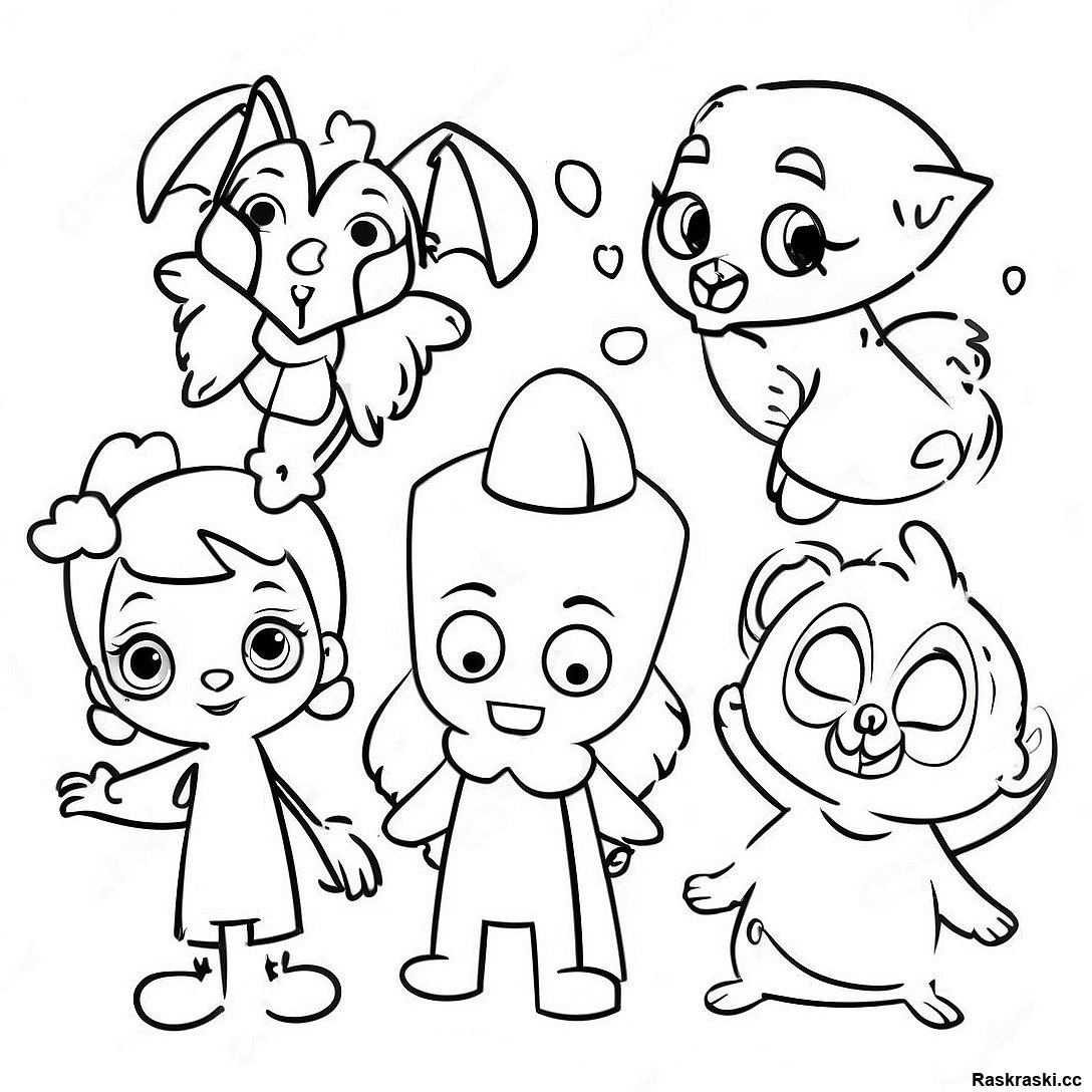 Раскраска Веселых Персонажей Dtkl