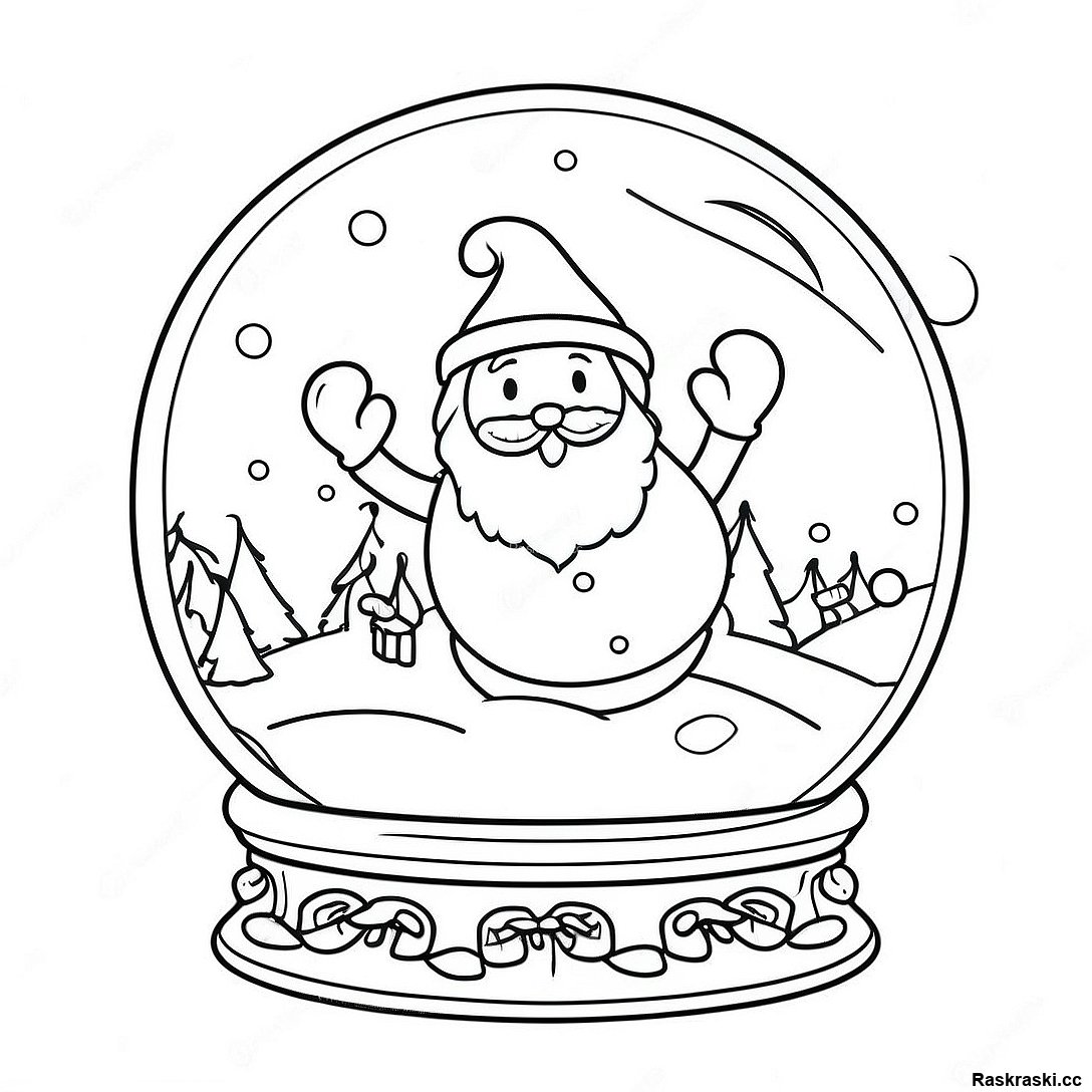 Скачать печатный PDF Раскраска Волшебного Снежного Шара С Санта-Клаусом