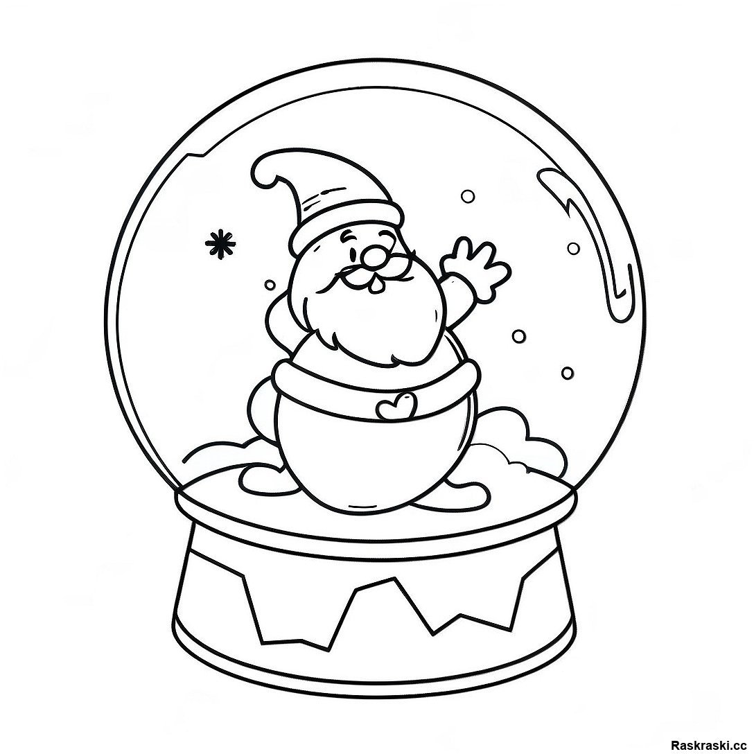 Скачать печатный PDF Раскраска Волшебного Снежного Шара С Санта-Клаусом