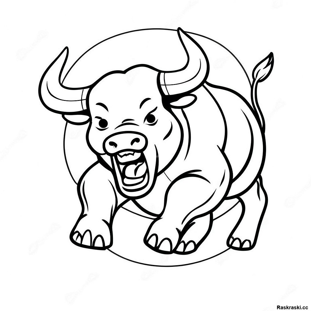 Скачать печатный PDF Разъяренный Бык В Атаке - Раскраска
